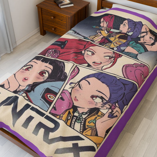 Kpop blanket, kpop art Velveteen Plush Blanket — Kawaii Comic Panel Throw