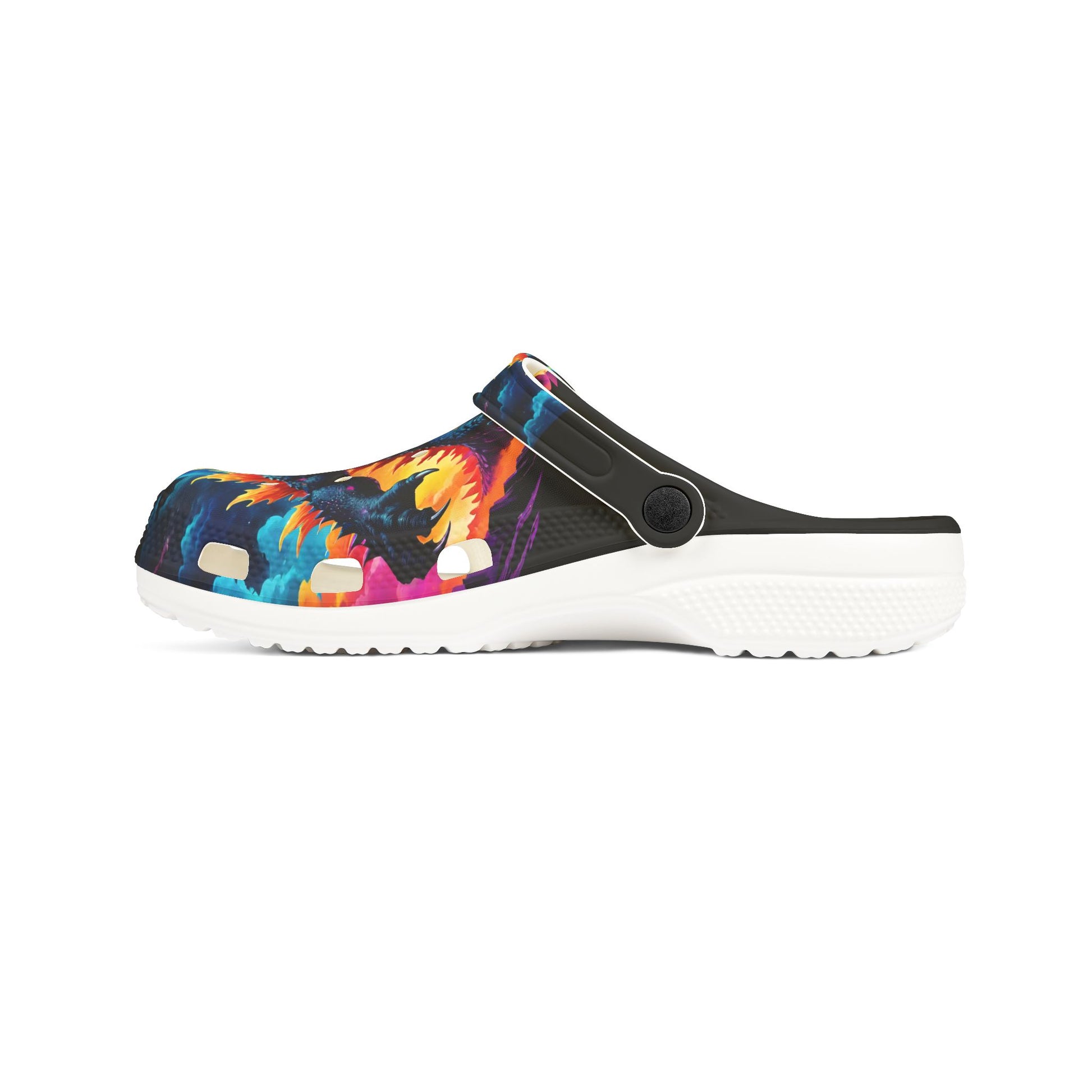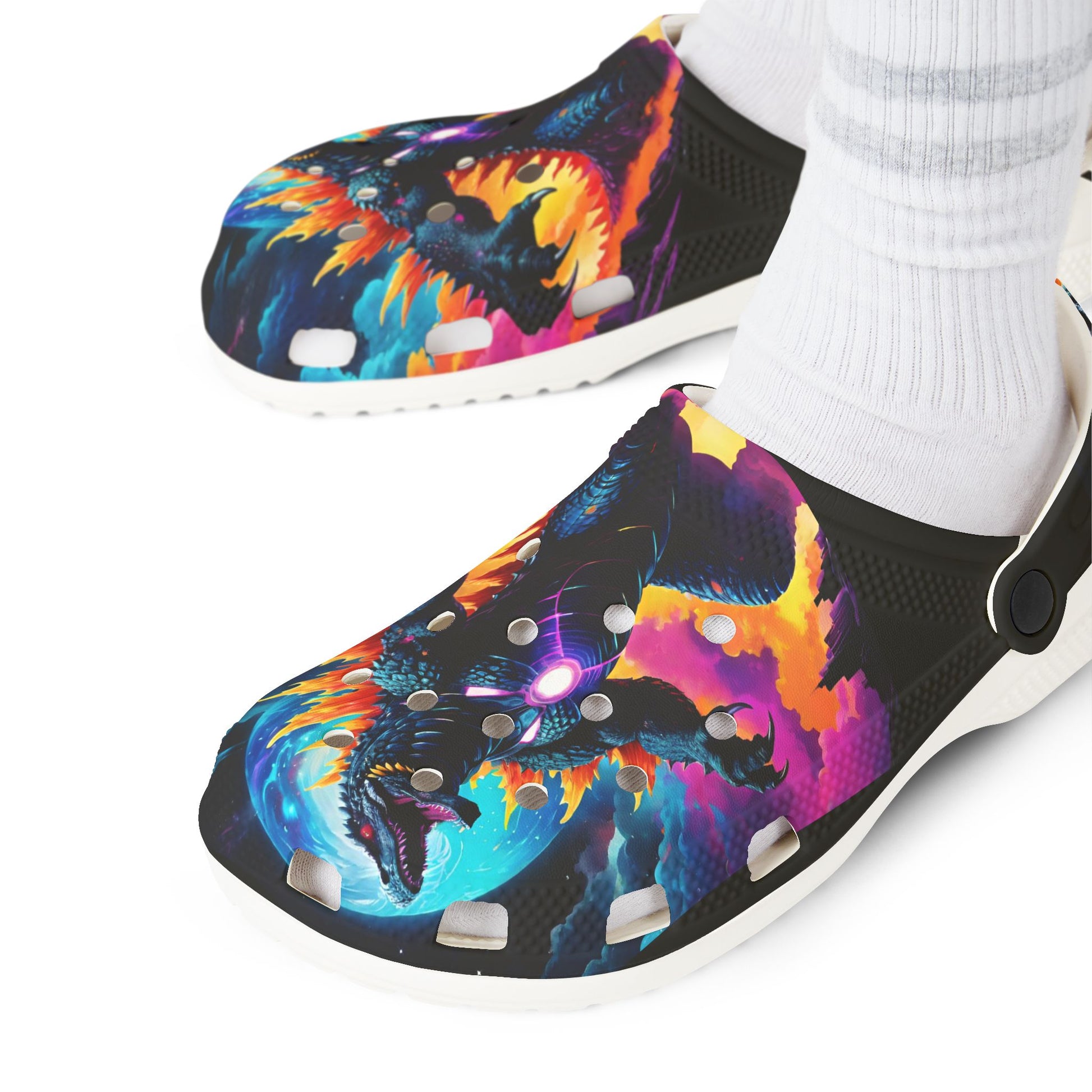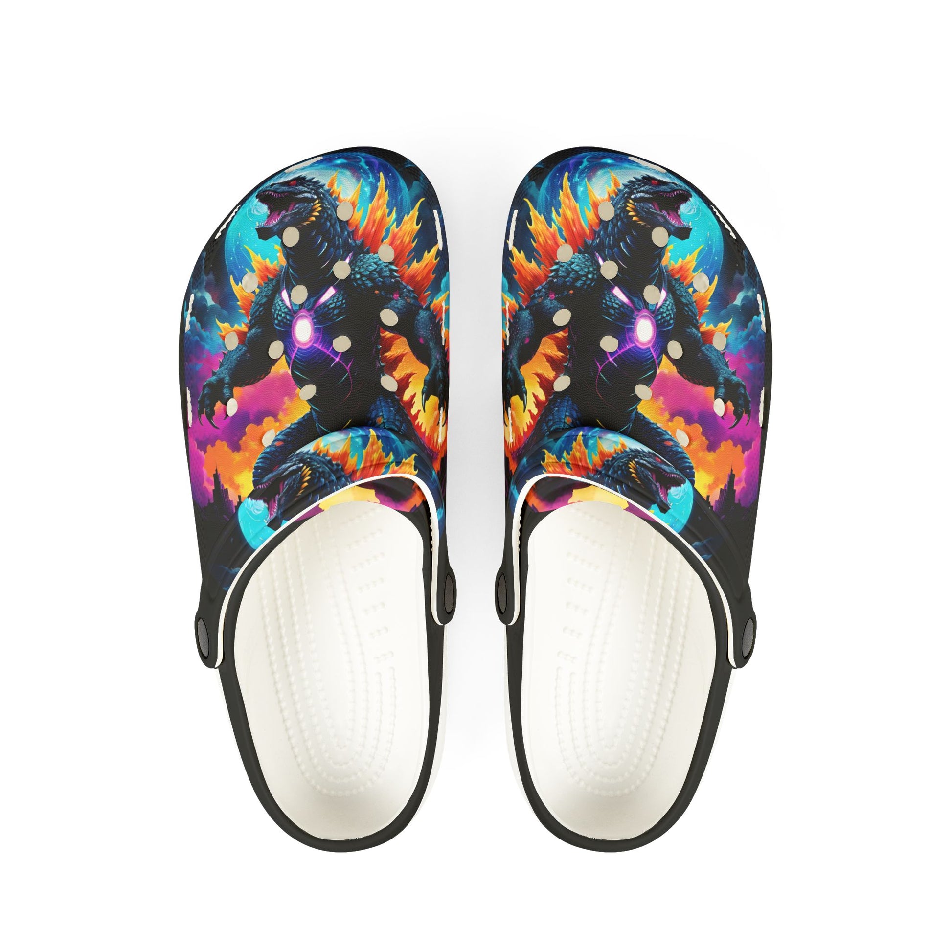 Electric Godzilla Shoes with an all-over printed design featuring Godzilla. These trendy clogs are perfect for both indoor and outdoor wearing, offering great comfort with a soft EVA sole and anti-slip performance. Ideal for Godzilla fans and those looking for unique footwear. Perfect for gifting on birthdays, holidays, or special occasions.